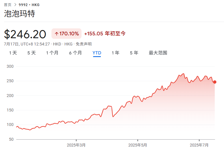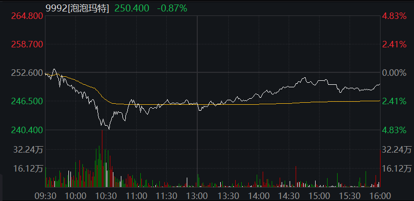 自从7月15日公布初步业绩报告之后,泡泡玛特股价连续两个交易下跌,7月16日大幅下跌超4%,今天延续跌势,收跌0.87%,盘中一度跌近5%。