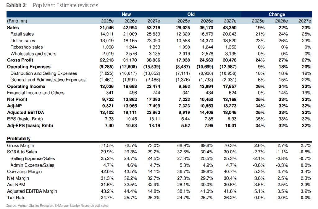 大摩在报告中称,泡泡玛特业绩增长曲线呈现加速陡峭态势,大中华区和亚太地区是超预期的关键市场。基于强劲的业绩表现,大摩大幅上调销售额、净利润预测。